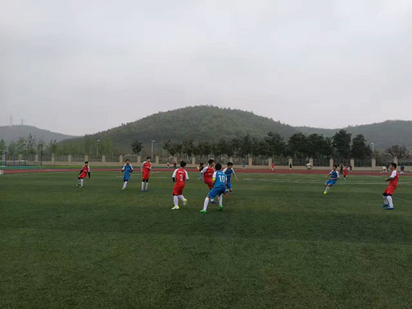 4月9日,小组赛第二轮对阵市一中初中部,对手的进攻阵线强大,给我校后防线造成不小的压力,但我校队员抗住压力,上一场发挥出色的5号队员徐苓远延续上一场的高水平发挥,通过一个任意球,一个点球,梅开二度帮队伍2:0锁定胜局,并提前小组出线。