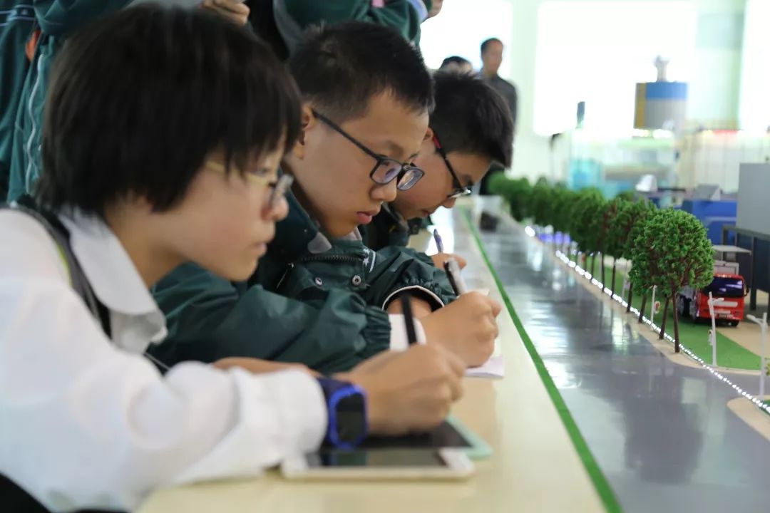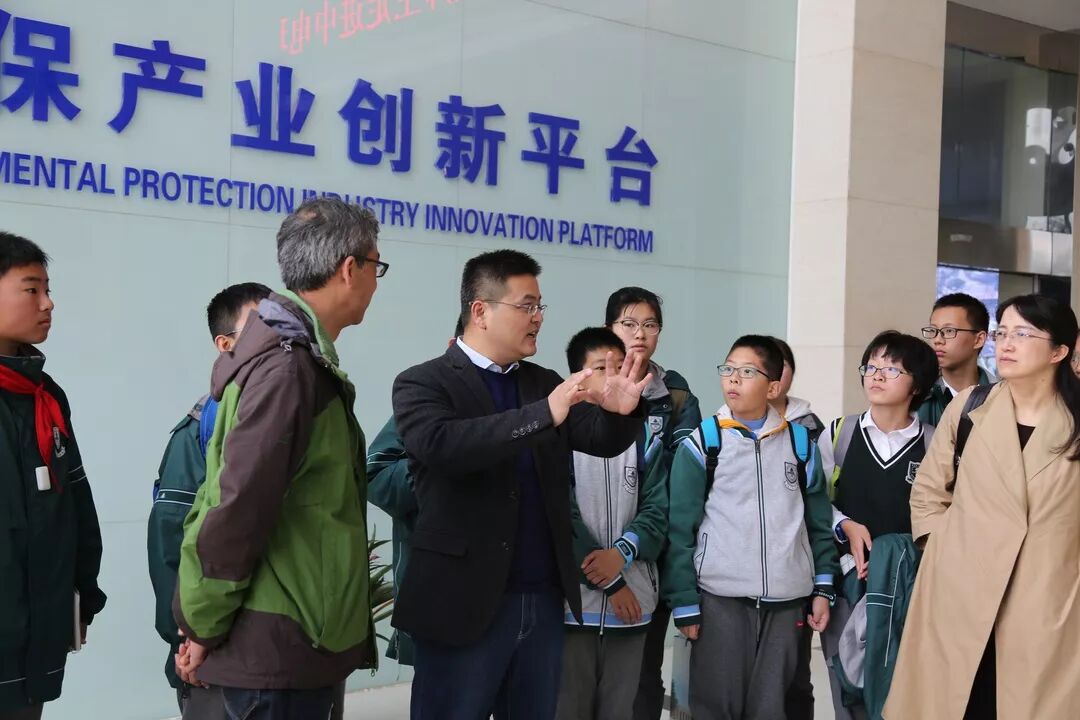 40分钟的车程后,同学们一行来到了中电环保,参观学习的第一站就是这里的环保产业科技创新平台啦。中电环保的工程师们向同学们普及环保知识的同时,对 “水、固、气”三大产业的核心技术、工艺流程做了丰富有趣地讲解。在这样的户外课堂中,同学们兴趣高昂,积极思考,踊跃提问,认真记录。