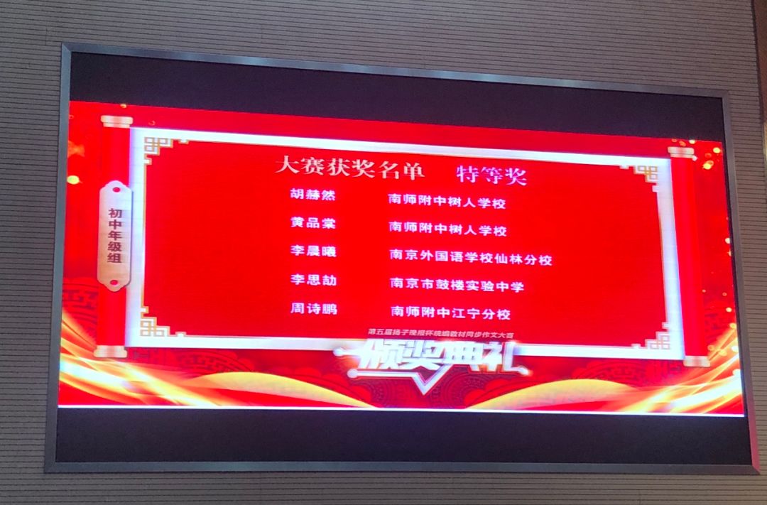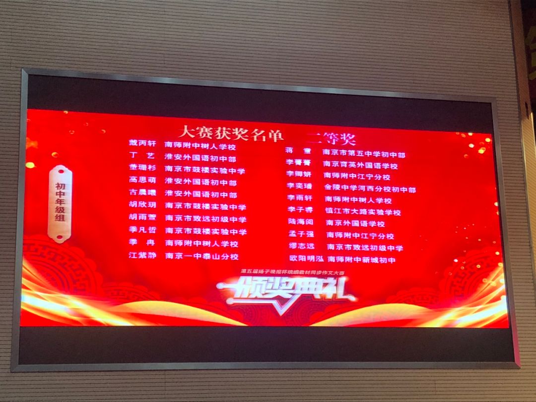 初三(14)班黄昊喆、初一(25)班罗越歆、初三(11)班戚陶然、初二(6)班杨冰傲,初三(20)班赵仪等五位同学获三等奖。